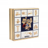 Der kompakte, in Fächer unterteilte, Holzkasten enthält 100 KAPLA-Plättchen aus naturbelassenem Pinienholz.