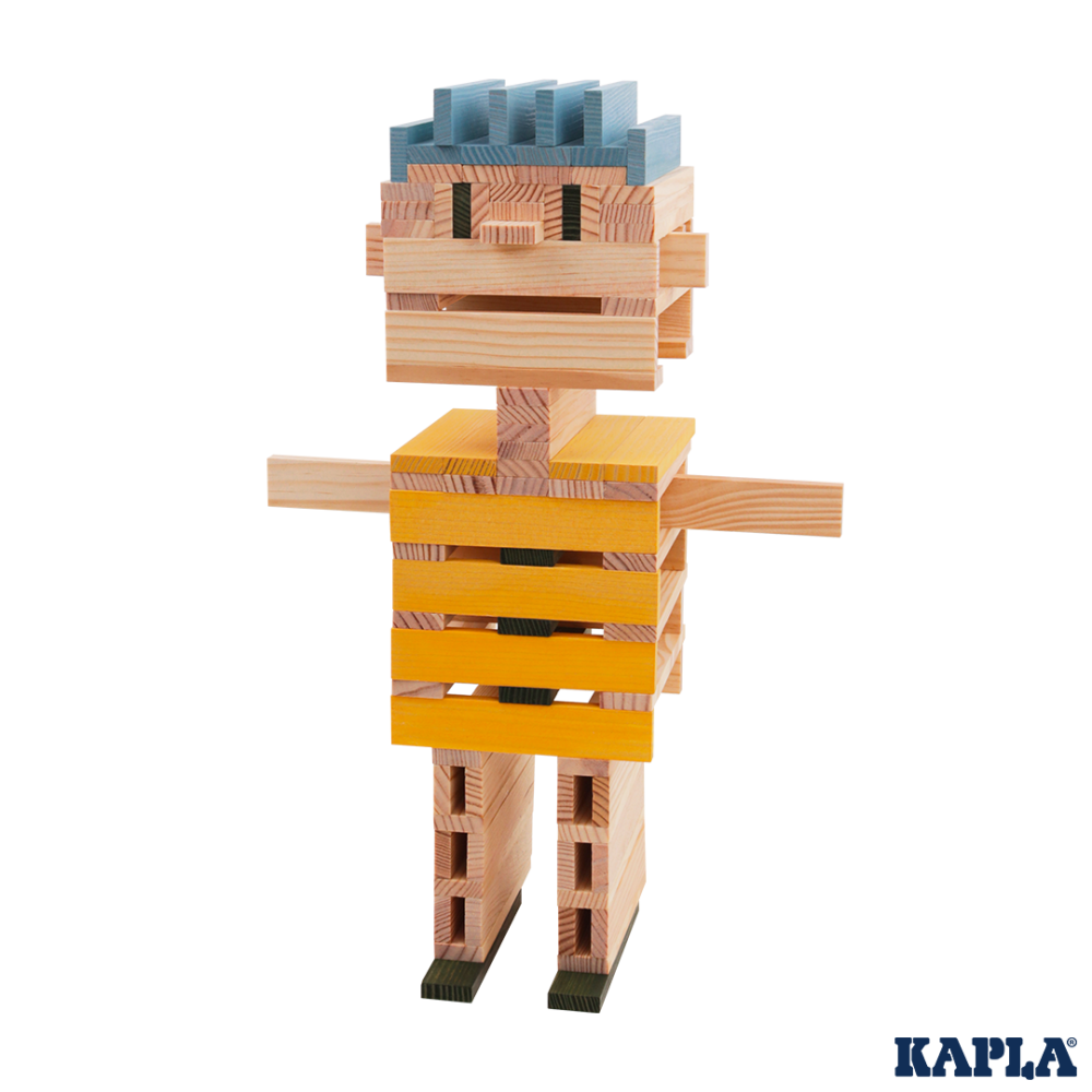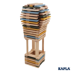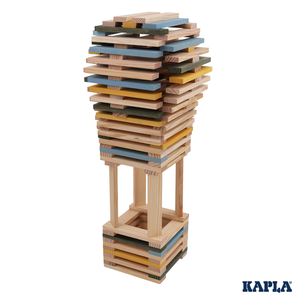 Die KAPLA-Plättchen sind aus naturbelassenem, nachhaltigem Pinienholz (Seekiefer) gefertigt, das aus französischen, zu 100% nachhaltig bewirtschafteten Wäldern stammt. Die farbigen Holzplättchen sind mit lebensmittelechter Farbe gefärbt.