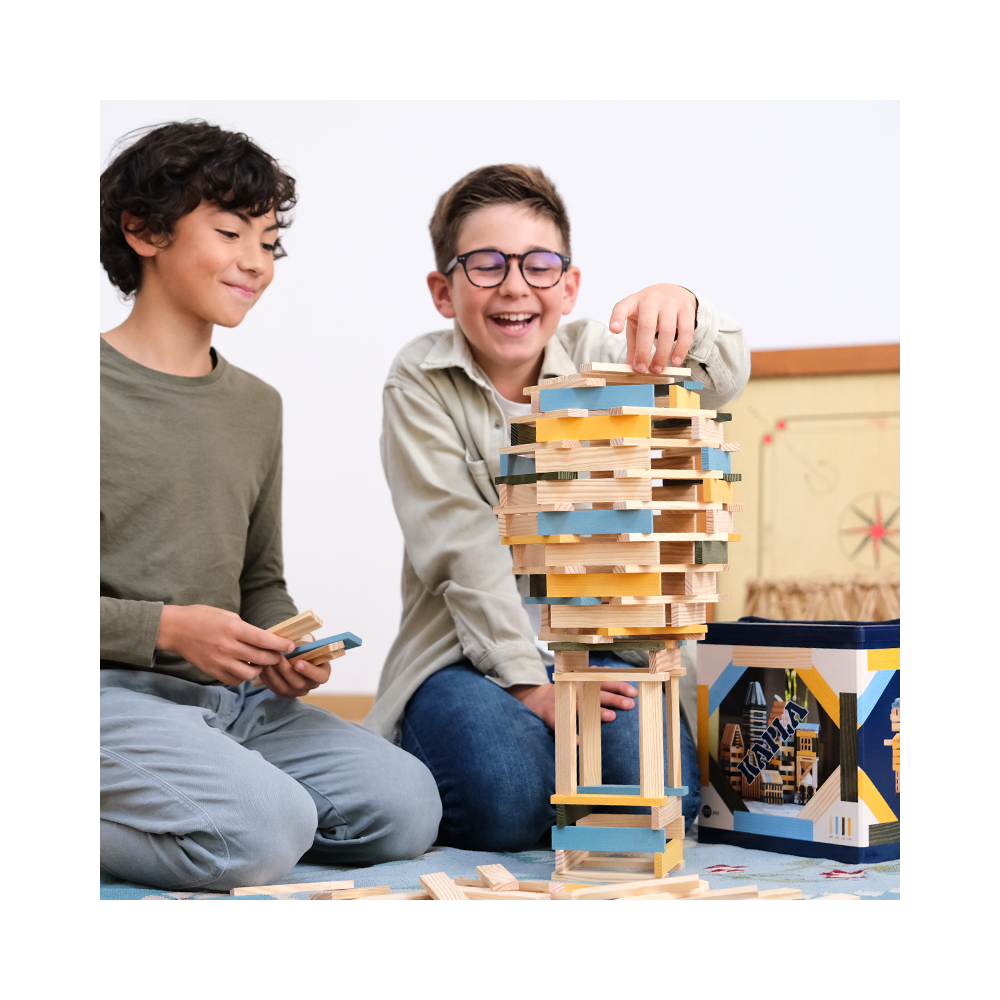 Ein KAPLA-Bauwerk ist naturgemäß vergänglich und seine Zerstörung ist oft genauso unterhaltsam wie sein Bau! Das nächste Mal entstehen dann aus denselben Holzplättchen neue Welten und Phantasiegebilde… Ein Spiel ohne Grenzen für stundenlange kreative Beschäftigung!