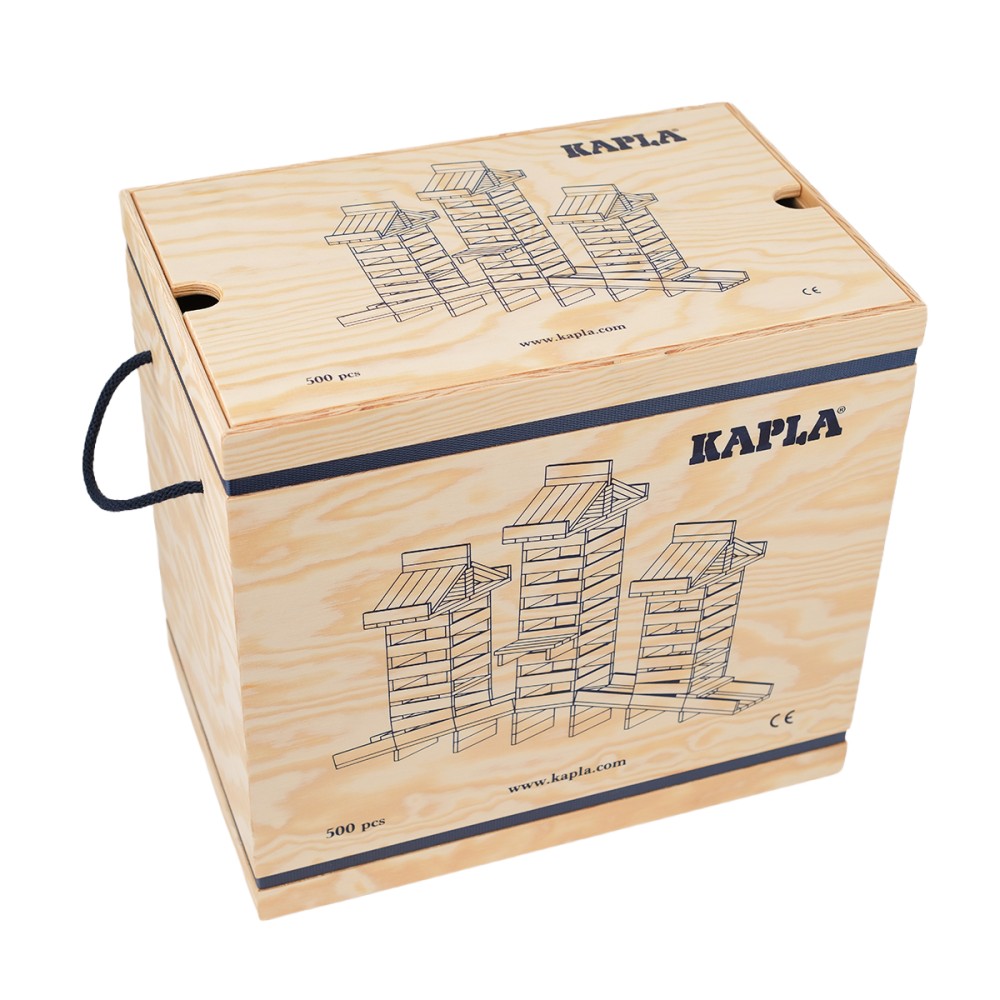 The KAPLA 500 Pack is a wooden construction toy designed to support both children and adults in their creative projects. Its elegant and sturdy wooden box makes it easy to store the planks and keep them close at hand.