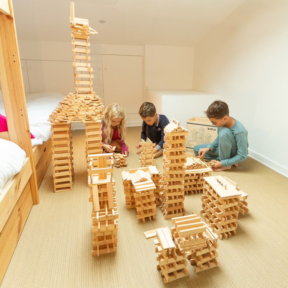 Whether building alone, with family or in a small group, the KAPLA 500 Pack is ideal for sharing moments of play, working together and bringing a wide range of creations to life: buildings, bridges, animals, labyrinths or abstract forms.