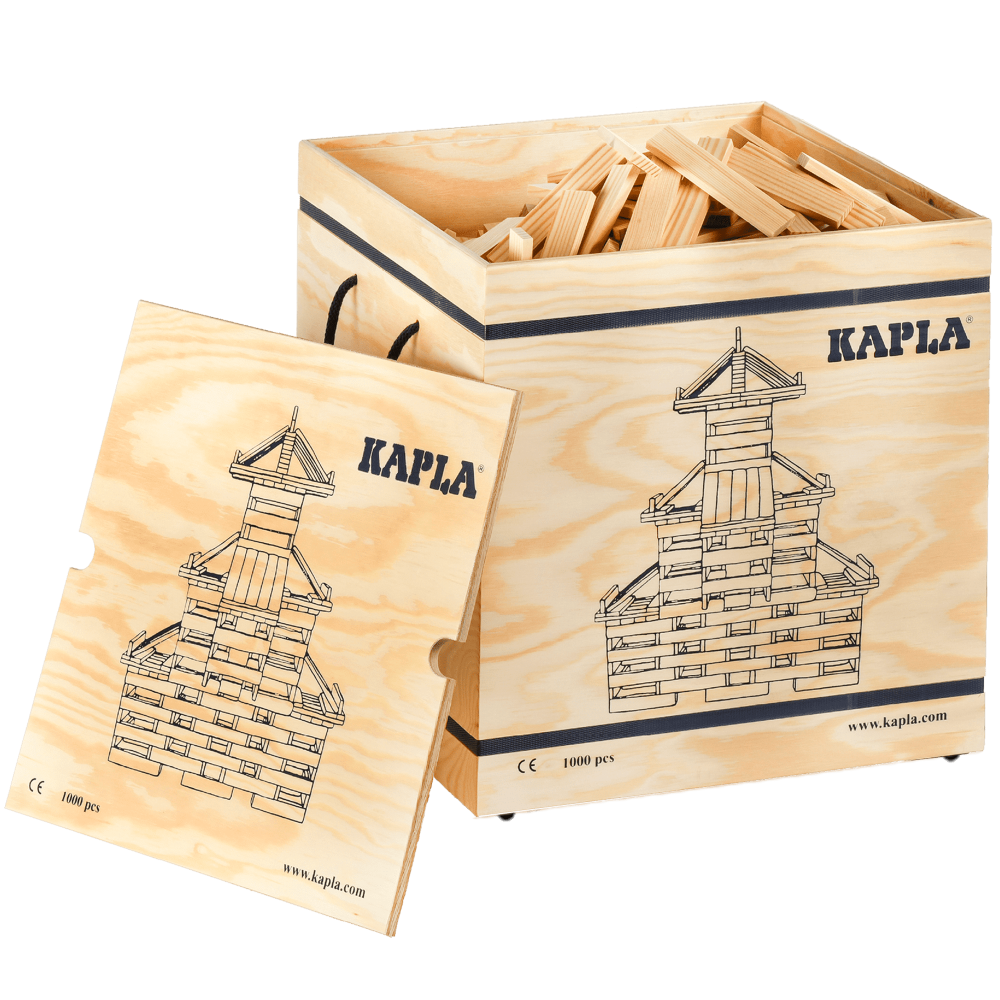 1.000 tablillas KAPLA en una caja de madera con ruedas: lo ideal para jugar en grupo o iniciarse en la construcción de enormes estructuras. Infinitas posibilidades...
