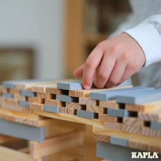 Les planchettes KAPLA, toutes de dimension identique, permettent de jouer et de créer à l’infini. Les planchettes sont simplement empilées, sans colle ni attache, et l'on construit au gré de son imagination et sa créativité…
