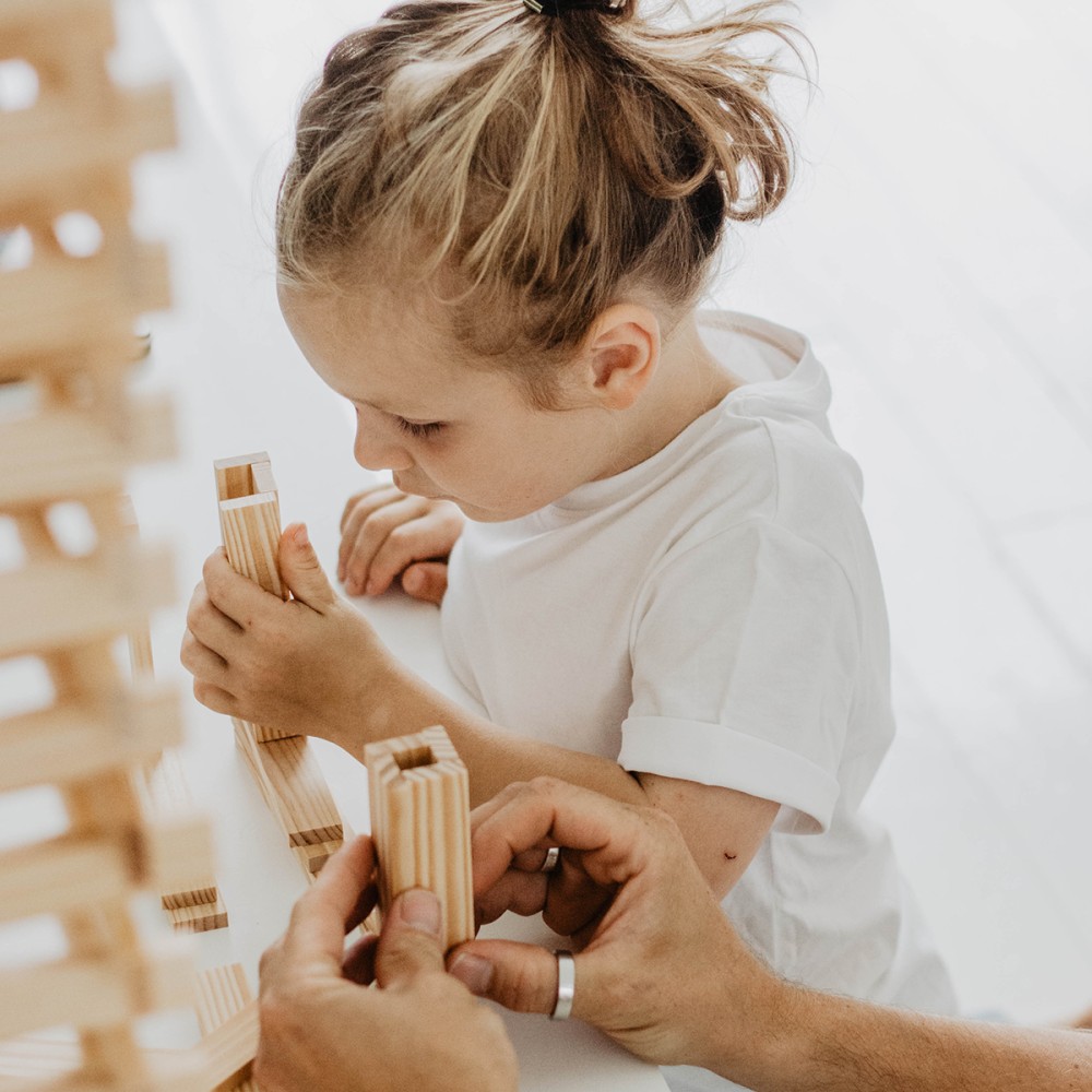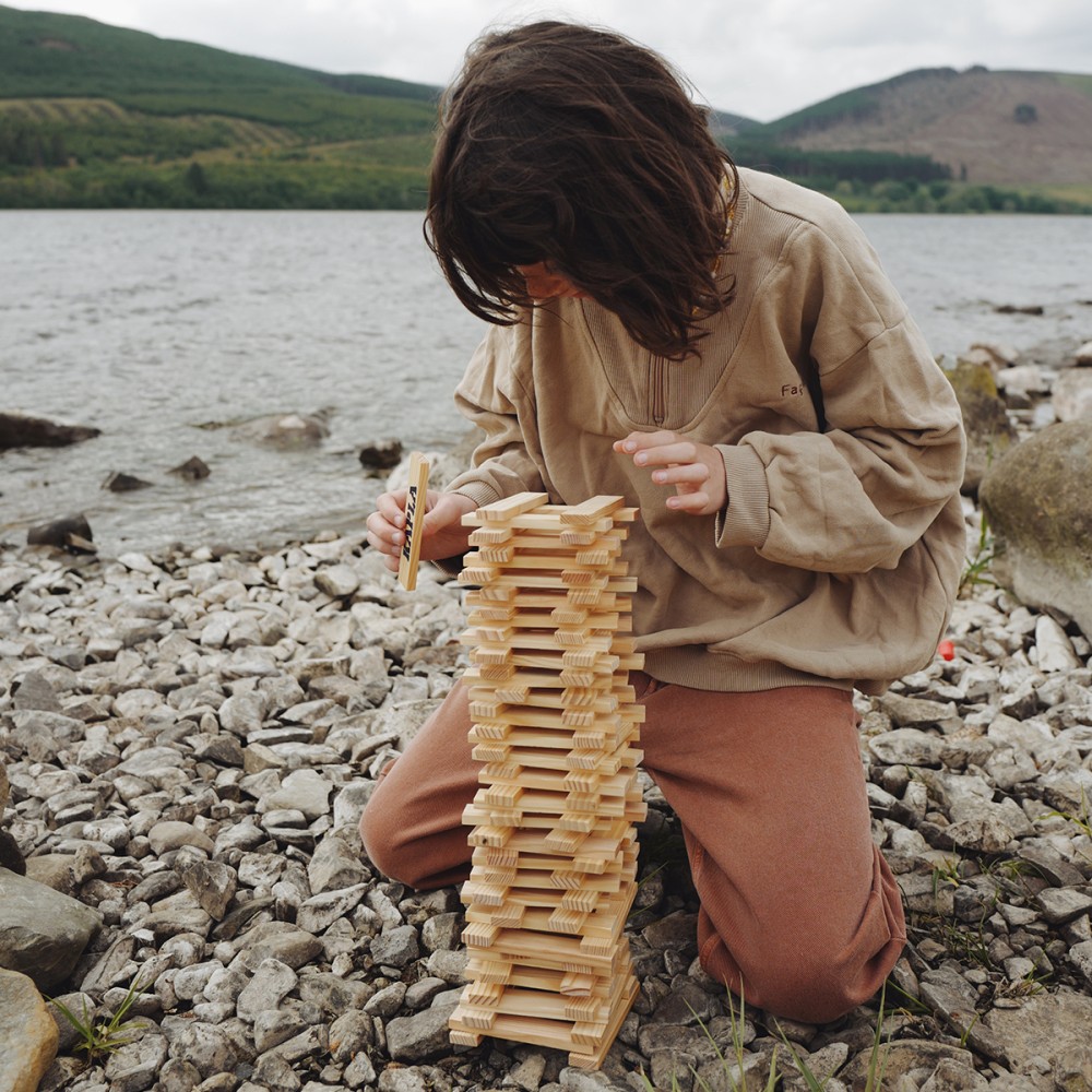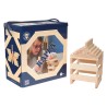 Toutes les planchettes sont en pin des Landes naturel et sont rigoureusement identiques. Cette simplicité fait la force du jeu KAPLA : un principe unique qui stimule la créativité, la concentration et la motricité fine, sans règle imposée. Chaque construction est libre, éphémère et entièrement issue de l’imagination du joueur.