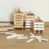 Dalle foreste francesi rinnovabili al 100%, le tavolette KAPLA sono in legno di pino marittimo naturale. Le tavolette colorate sono pitturate con coloranti alimentari.