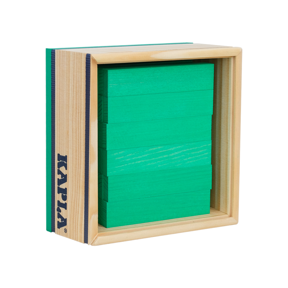 De KAPLA 40 bevat 40 gekleurde plankjes. De plankjes zijn gerangschikt in een mooi houten kistje, opgevrolijkt met een bijpassende boord en afgesloten met een transparante schuifdeksel.