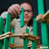 De KAPLA-plankjes, afkomstig uit Franse wouden die 100% hernieuwbaar zijn, zijn in grenenhout uit de Landes, natuurlijk en onbehandeld. De gekleurde plankjes zijn gekleurd met voedselverf.