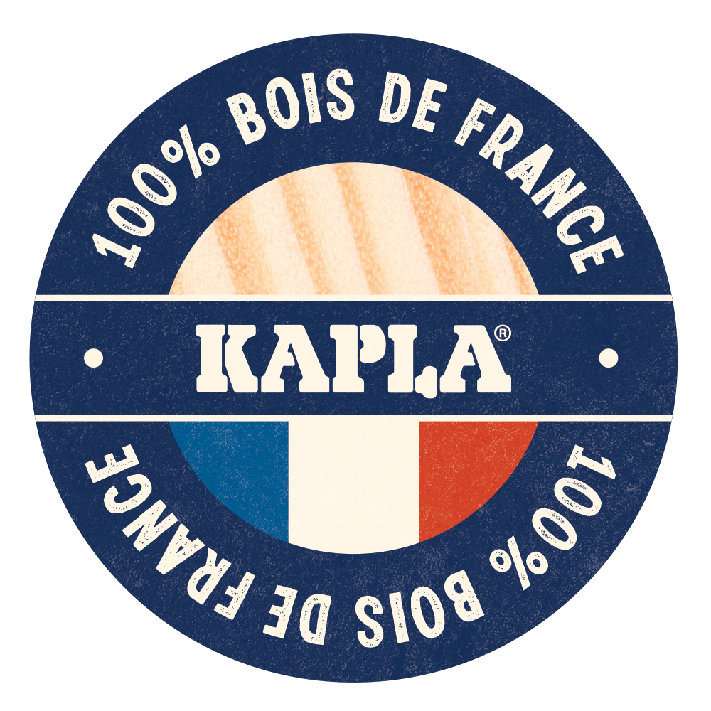 Issues de forêts françaises 100% renouvelables, les planchettes KAPLA sont en bois de pin des Landes, naturel et durable. Les planchettes colorées sont teintées avec de la peinture alimentaire.